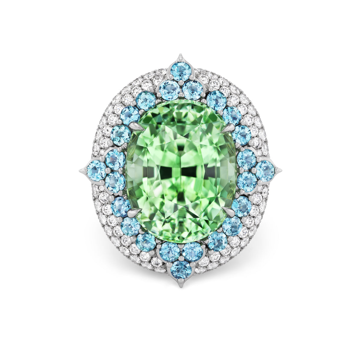 Platinum Paraiba Type Tourmaline, Alexandrite & Diamond Ring