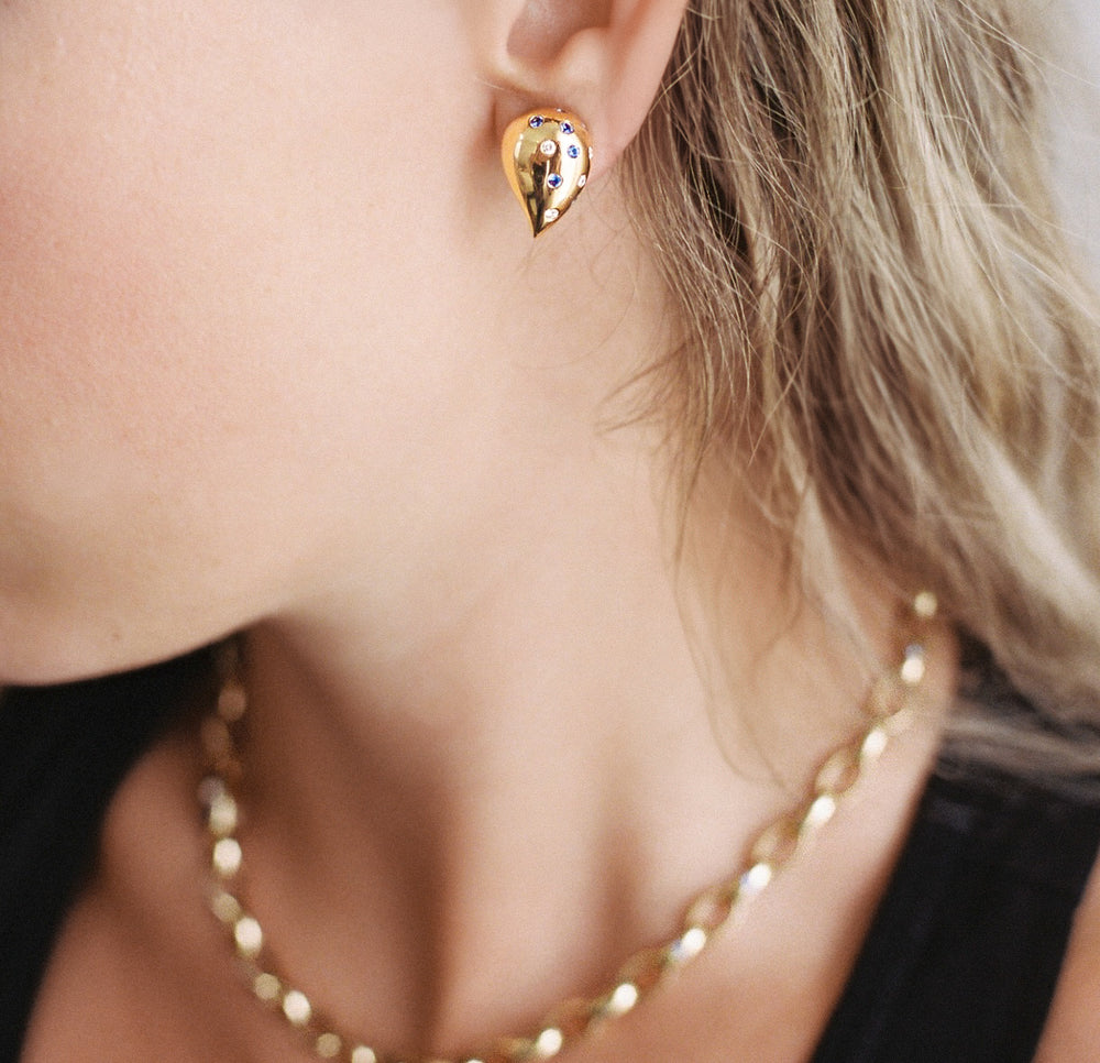 "Shift Your Focus Inwards" 18K Yellow Gold Sapphire and Diamond Earrings