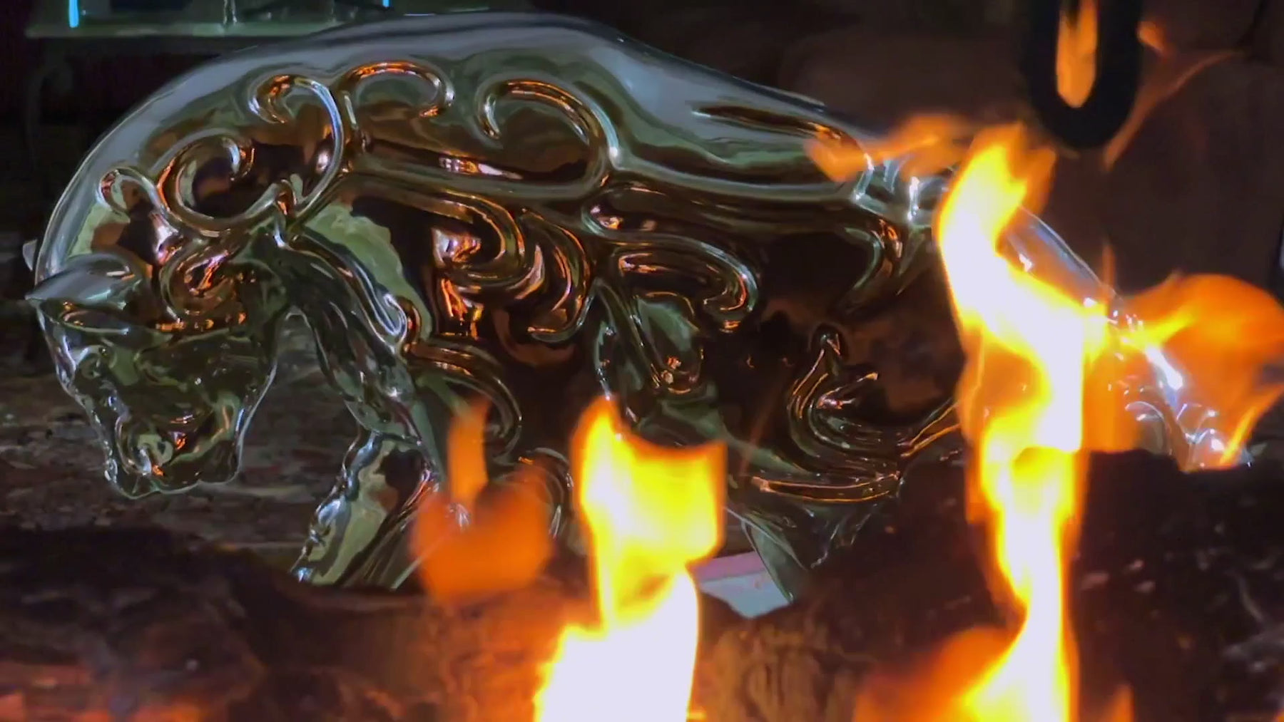 Micheal Benisty, an artist and sculptor, believes magic is created only to be shared. His mission is to push boundaries and spread positivity through his work. His installations have graced Burning Man and many other exotic locations. “Wolf and Lady” is his lyrical homage to animal and man living in peace and harmony. This one-and-only sculpture is Mirror Polished Stainless Steel and Electroplated 24K Gold. 20”T x 17”L x 10”W and weighs approximately 35 lbs. Reference No: 16-00010
