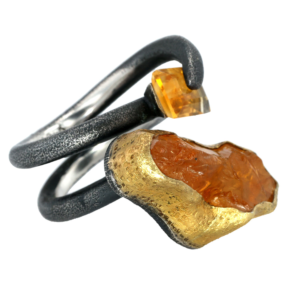 24K Yellow Gold and Sterling Silver Ring with Raw and Faceted Citrine.