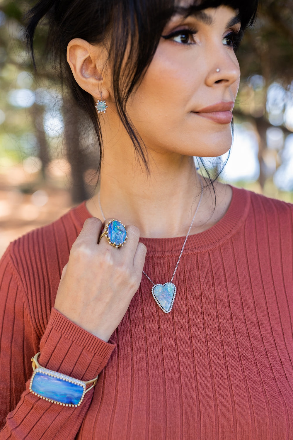 18K Yellow Gold, Boulder Opal, Sapphire and Diamond Hinged Bracelet