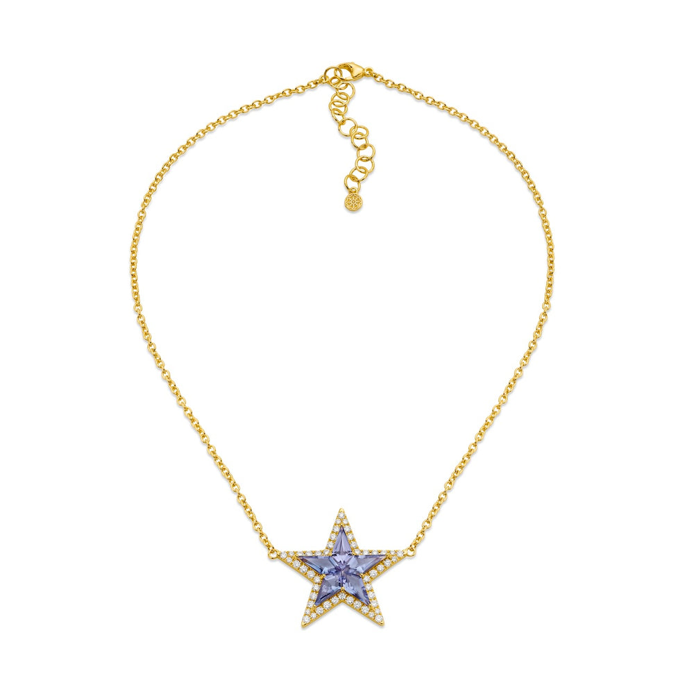20K Yellow Gold Necklace with Tanzanite & Diamond Star