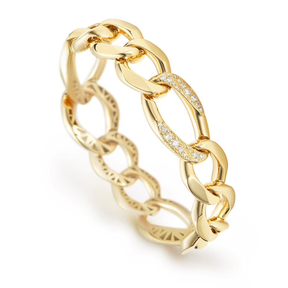 You can feel the warmth and power emanating from this timeless creation by designer Bizzotto Gioielli. Gorgeous and refined, handsome links of 18K Yellow Gold highlighted with white diamonds (2.51ctw) form an heirloom piece you may never want to take off. You must try it on to appreciate its power.