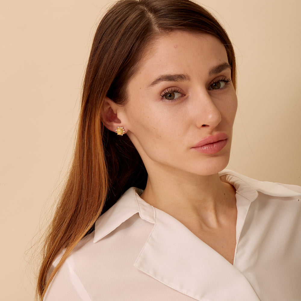 18K Yellow Gold Hex Stud Earrings with Ethiopian Opal (approx. 3ctw) and diamonds (0.25ctw). Reference No: 10-00090