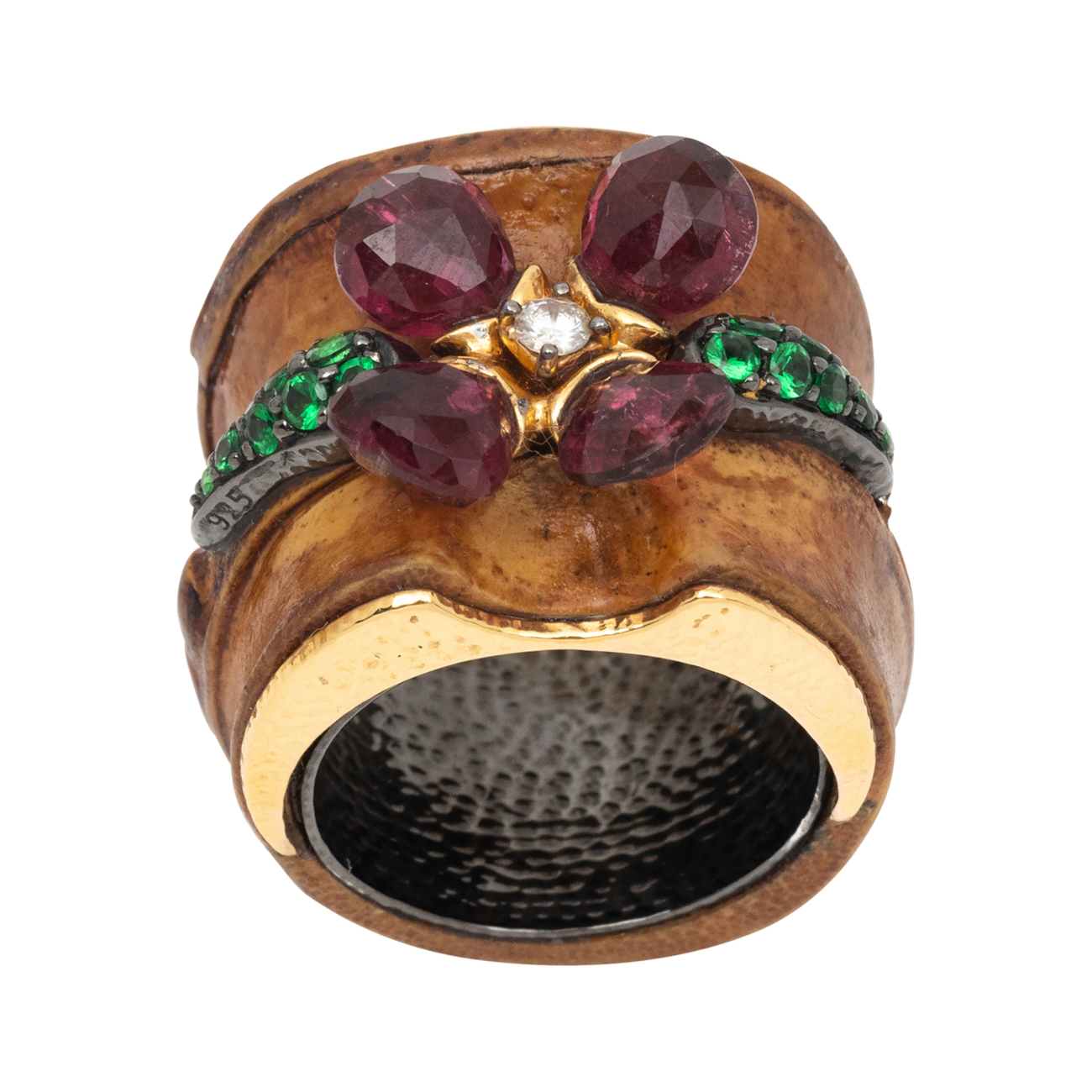 Blossoming Bamboo Ring with Pink Tourmaline, Diamond and Tsavorite by Lotus Art De Livre . Limited Edition: #56. Reference No: 05-00267