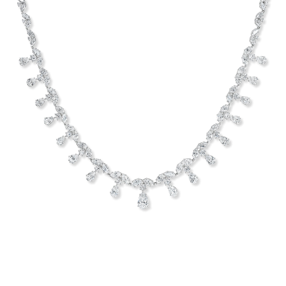 Platinum Diamond Necklace with Pear, Marquise, and Round Brilliant Diamonds