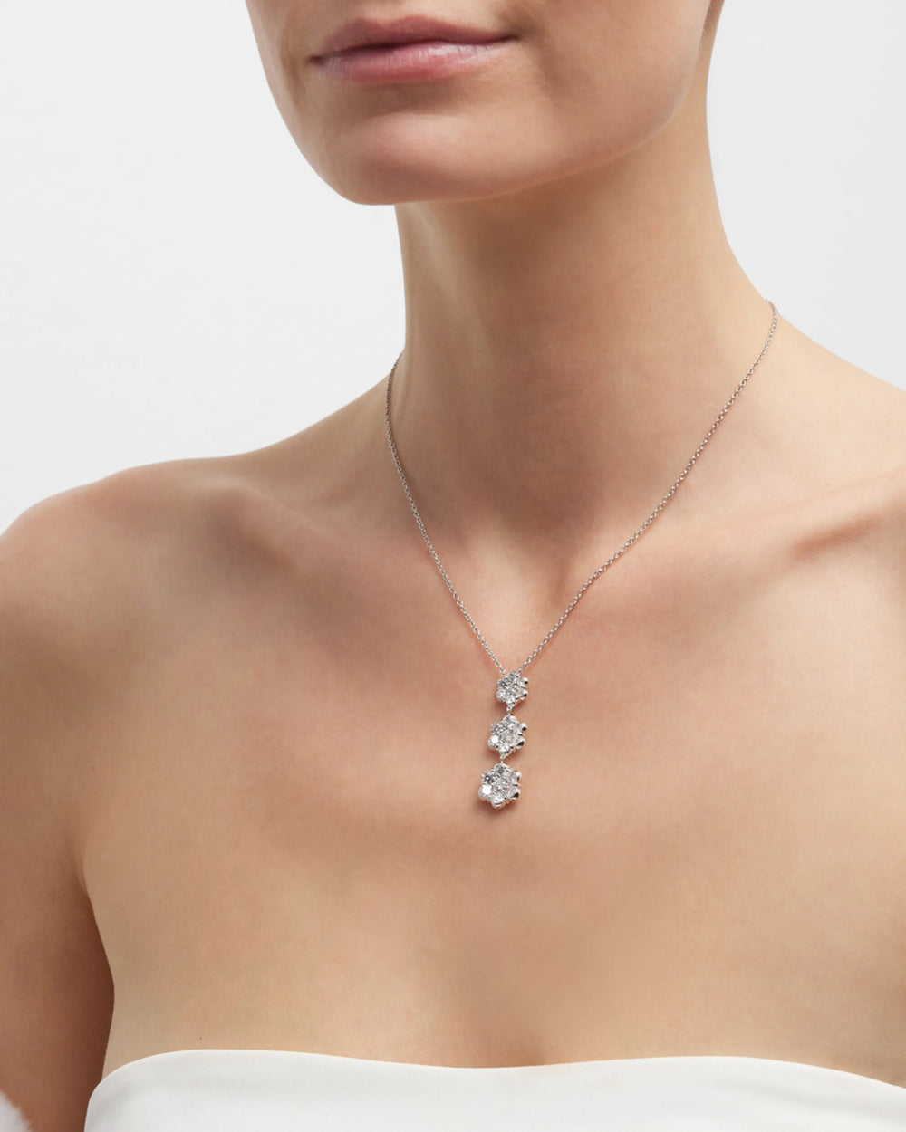 Platinum Triple Buttercup Flower Diamond Pendant Necklace