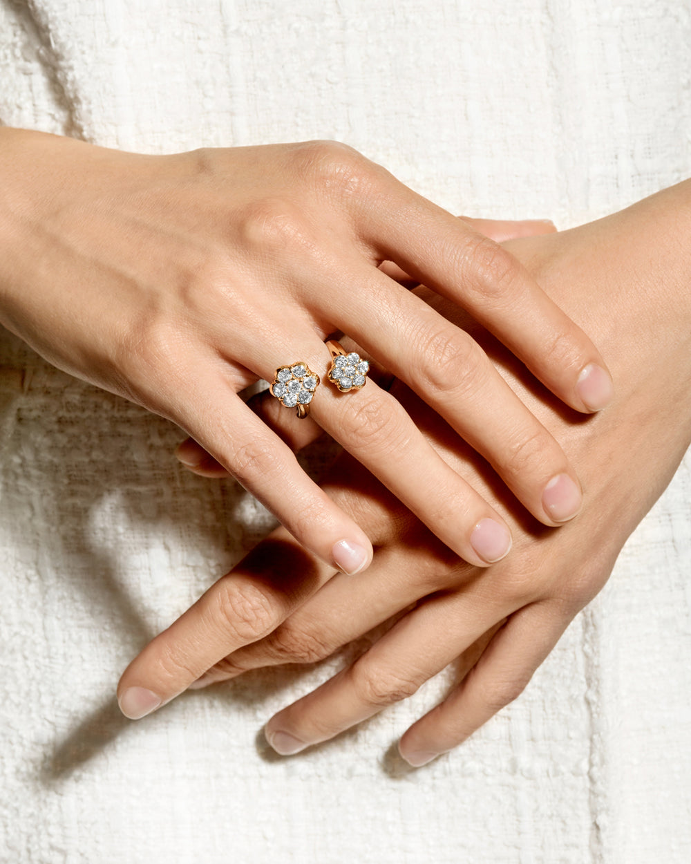 18K Yellow Gold Bypass Buttercup Flower Diamond Ring