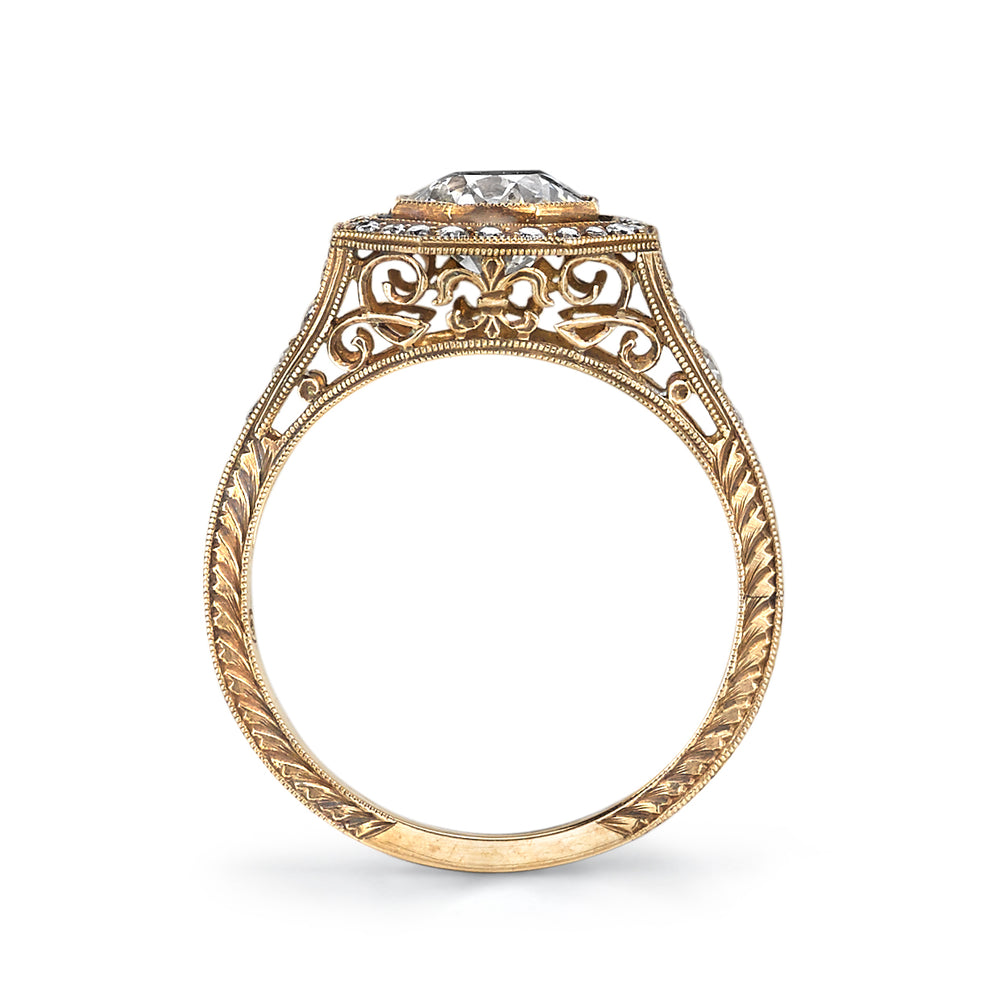 Oh MCKENNA, how your octagonal beauty inspires. You are shapely yet serious and your flirty filigree has serious pedigree. Another winning design by Single Stone, this beauty is crafted in 18K Yellow Gold accented with Old European Cut Diamonds (1.33 cttw) and a center stunner of a stone just under a carat. (0.97 CT (J/SI2) EGL#914224803D Available in size 6. Reference No: 07-00893