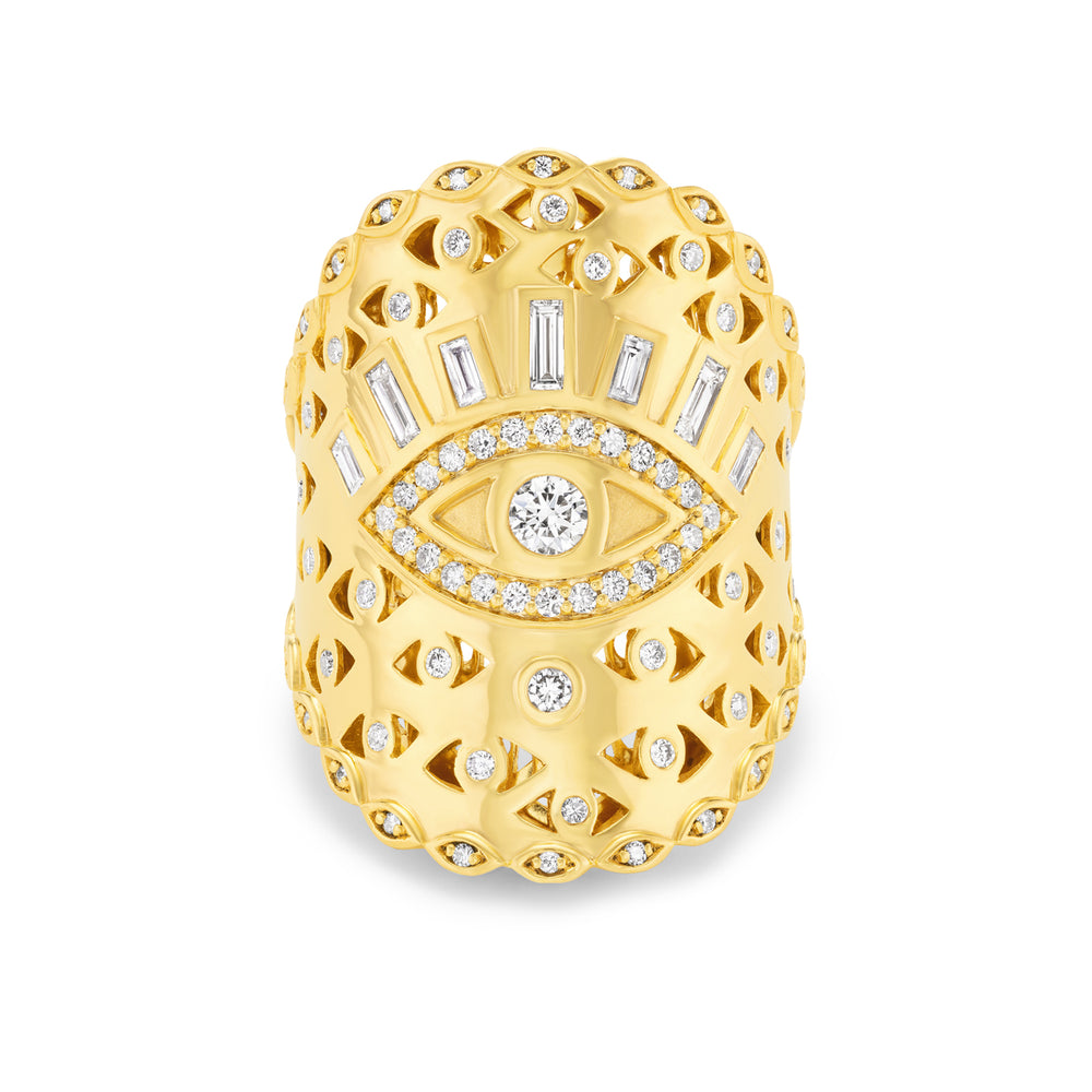 20K Yellow Gold Diamond Evil Eye Wrap Ring