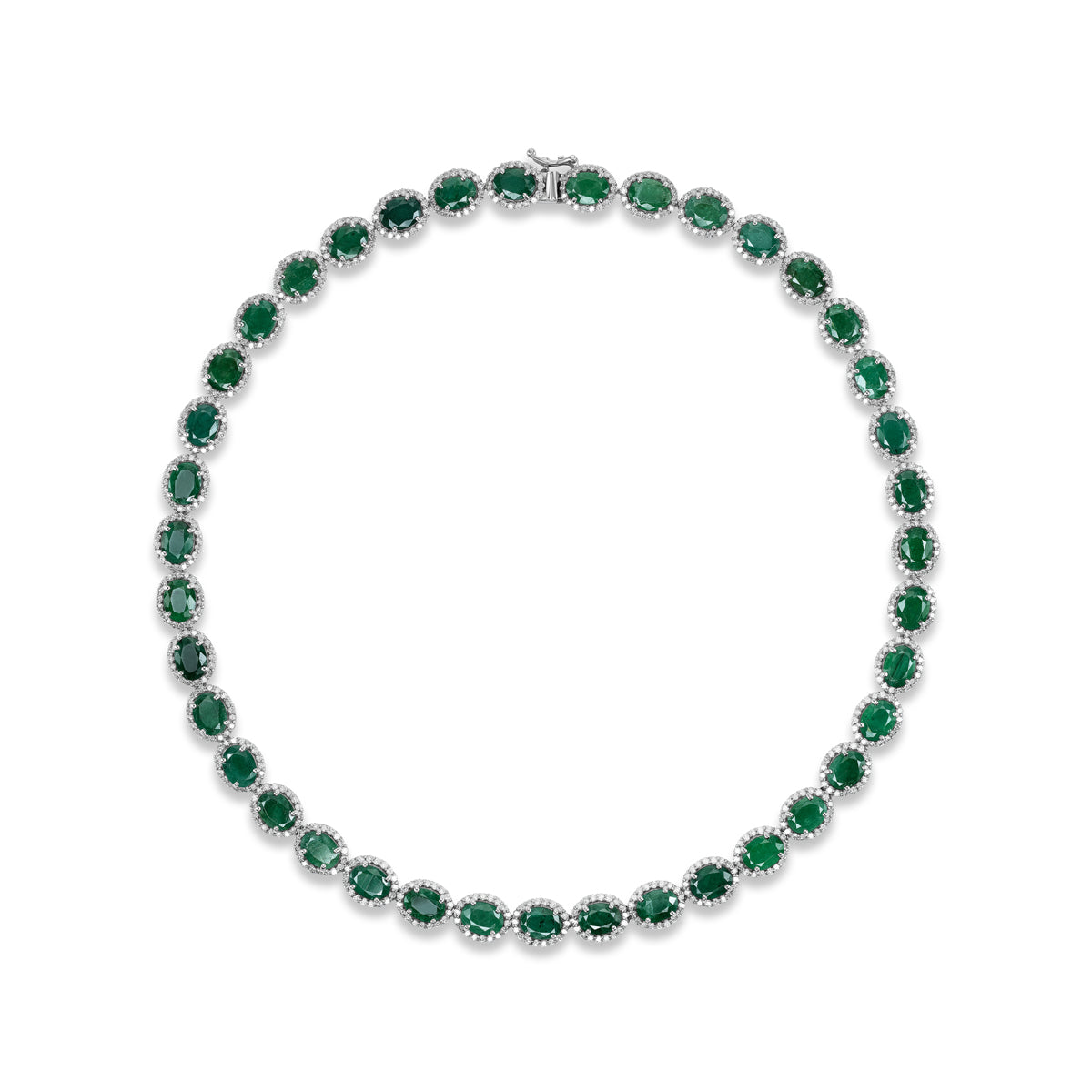 18K White Gold, Emerald and Diamond Necklace by Sophia D. Reference No.: 01-02856