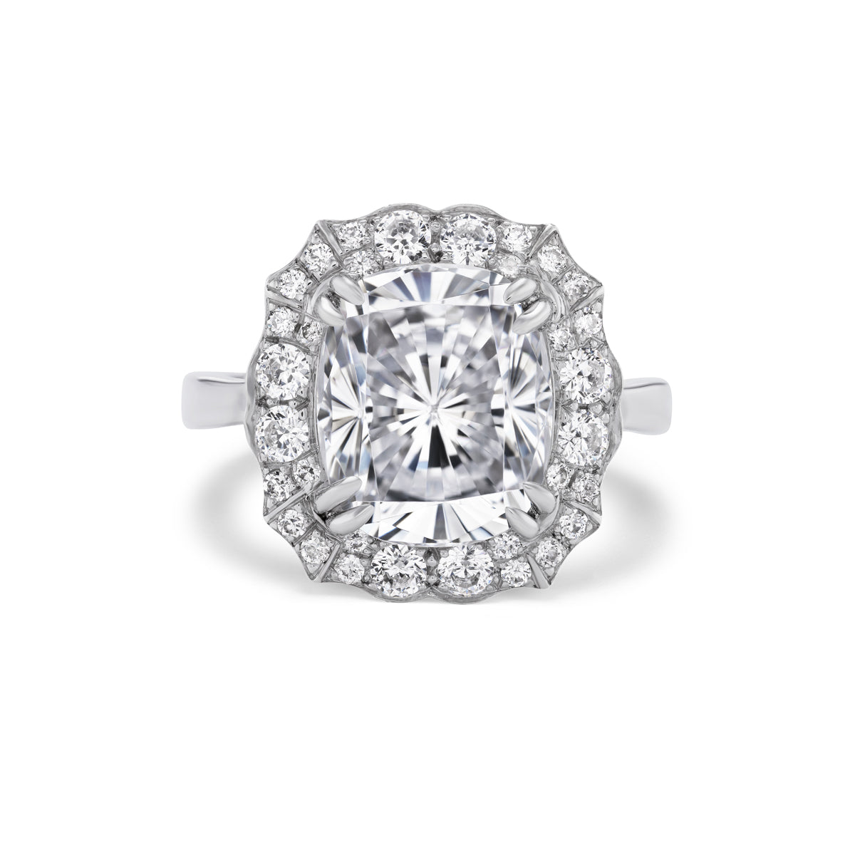 Platinum 4 Carat Cushion & Pave Engagement Ring Model