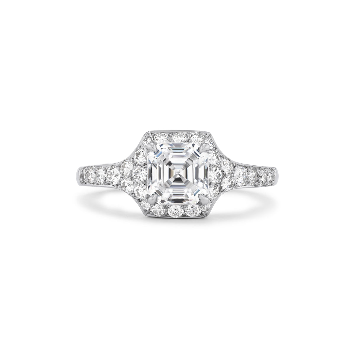 Platinum Monroe Ring with Diamonds (0.57 cttw) by Michael Bondanza. Shown with 1.5ct Asher Cut Center Stone. Size 7. Price is for setting only. Reference No.: 07-00959
