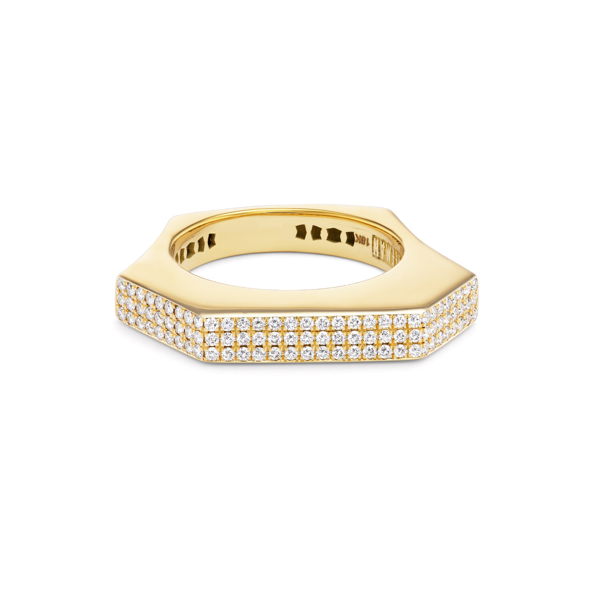 18K Yellow Gold Hexagon Ring with Pavé Diamonds (0.46ctw). Reference: 05-00075