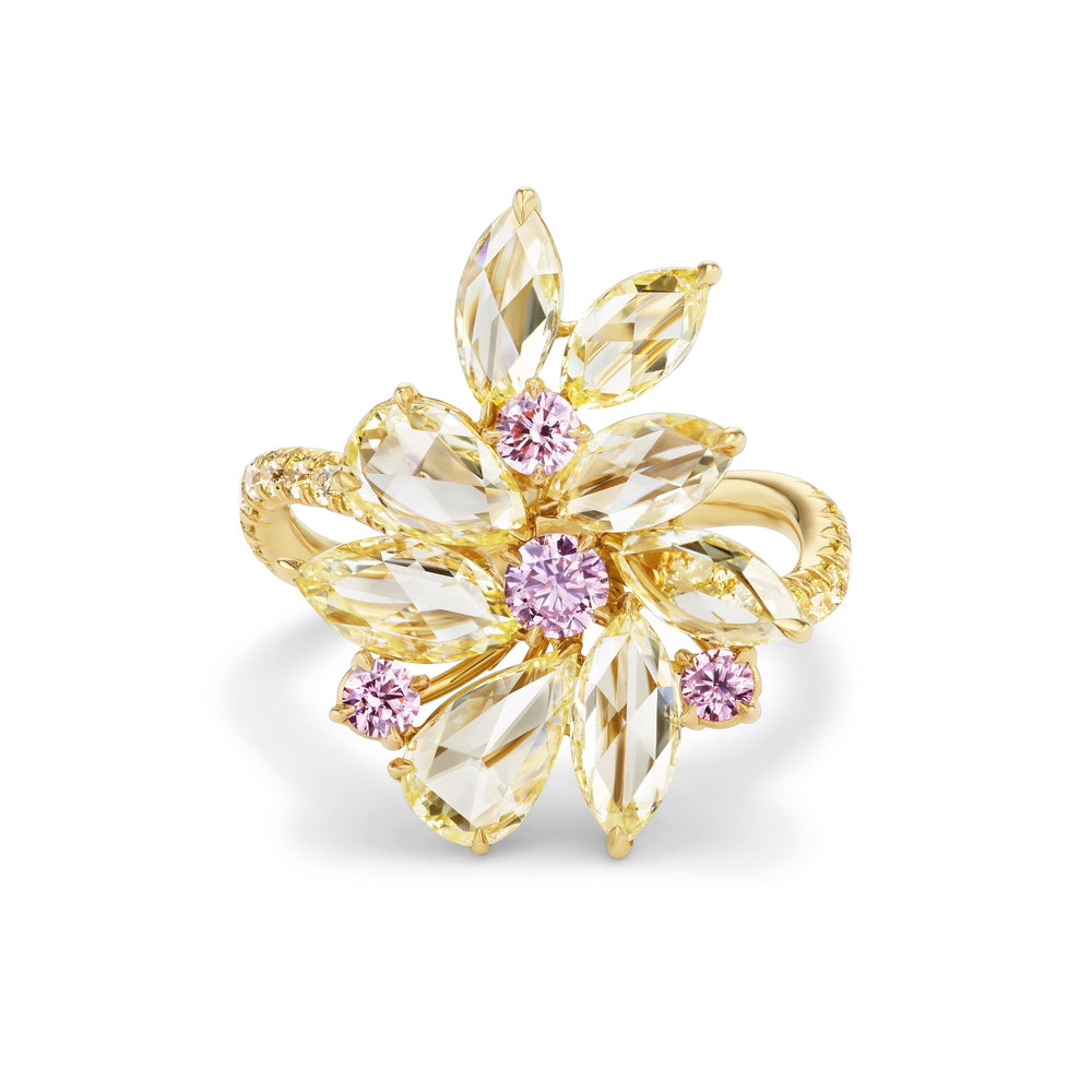 18K Yellow Gold, Rose Cut Fancy Yellow, Pink & Yellow Diamond Ring