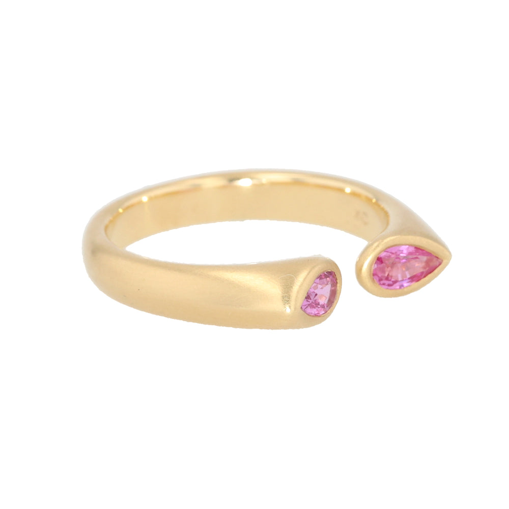 18K Yellow Gold Pear Shaped Pink Sapphire Hug Ring