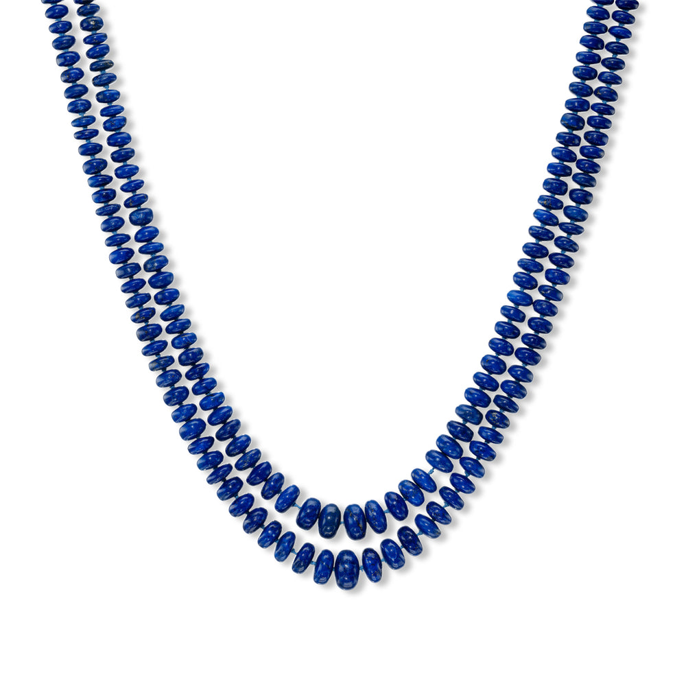 14K Yellow Gold, Double Strand Lapis (474 cttw) Bead Necklace by Paula Crevoshay. Length is 18". Reference: 01-00036