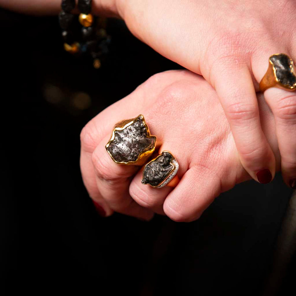 18K Yellow Gold Noir Authentic Sikhote-Alin Meteorite Ring