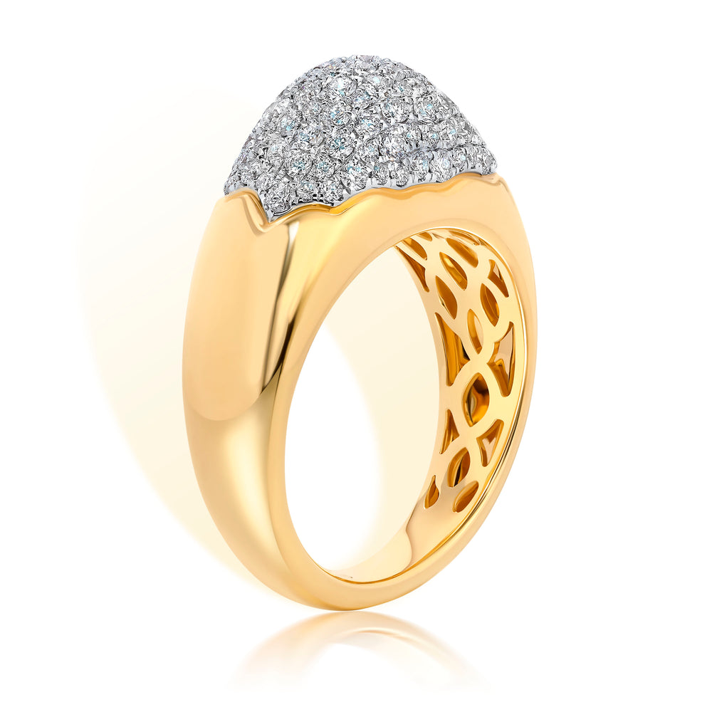 18K Yellow Gold (7.6 gr) & White Diamonds (94=1.00 cttw, G-H color) Summit "Bahia" Ring by Graziela Gems. Ring Size 7. Measures: 8.5m wide x 8mm high. Reference No.: 05-03307