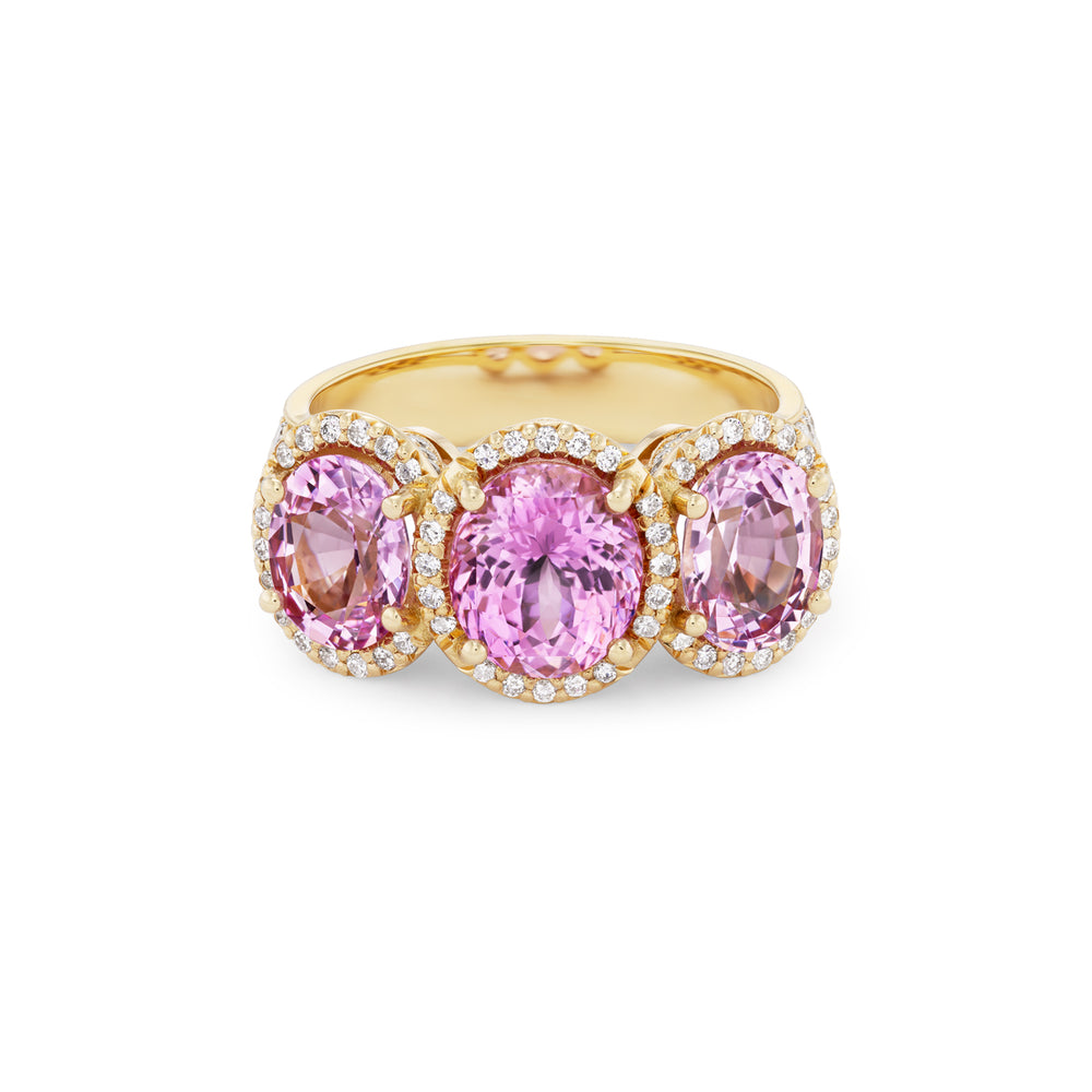 18K Yellow Gold 3-Stone Pink Spinel and Diamond Ring