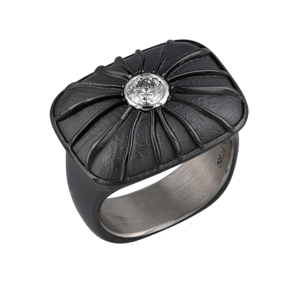 Knightsteel Ring with a Round Brilliant Cut Diamond (0.25 carat) Center. Reference: 06-00002