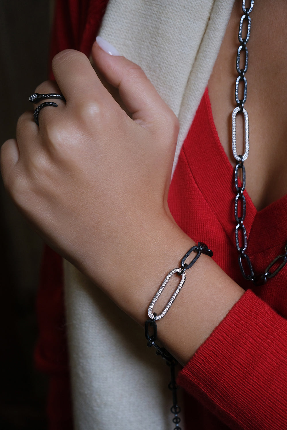 Oxidized Silver, 18K White Gold and 22K Yellow Gold "Chill Link" Diamond Bracelet