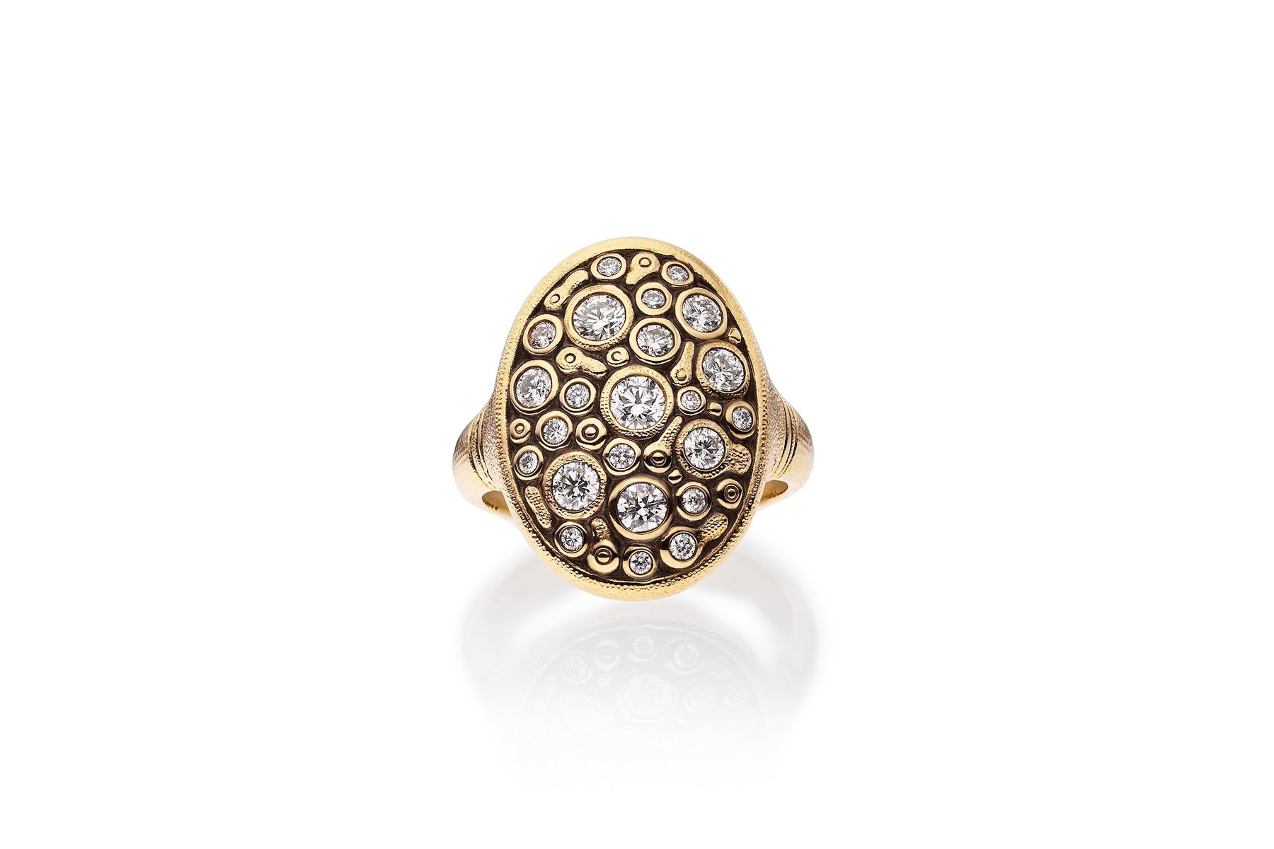 18K Yellow Gold Constellation Dome Ring with Round Brilliant Cut Diamonds
