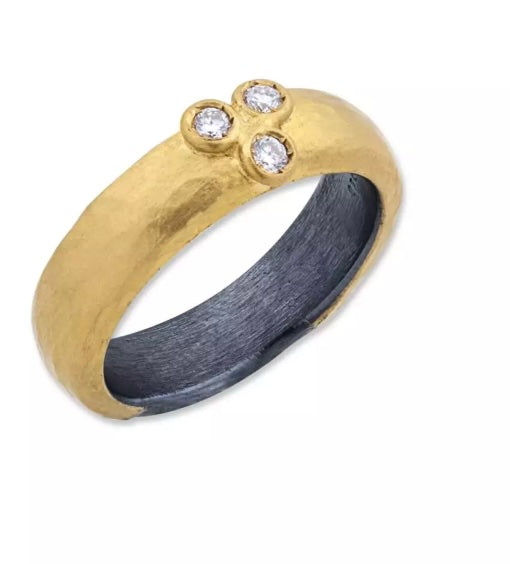 Oxidized Sterling Silver & 24K Yellow Gold "Stockholm" Ring with 5 Diamonds