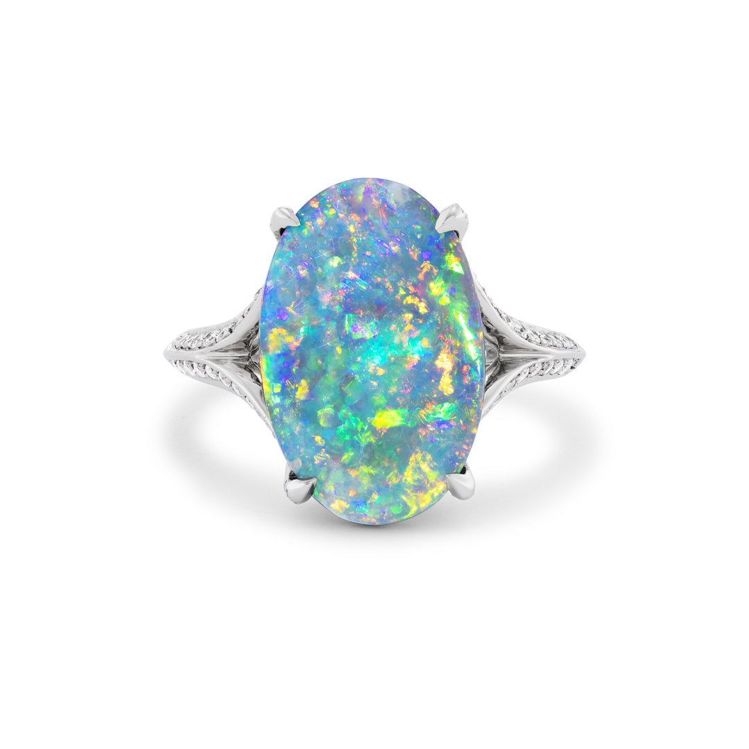18K Yellow Gold Jelly Opal, Fire Opal and Diamond Ring