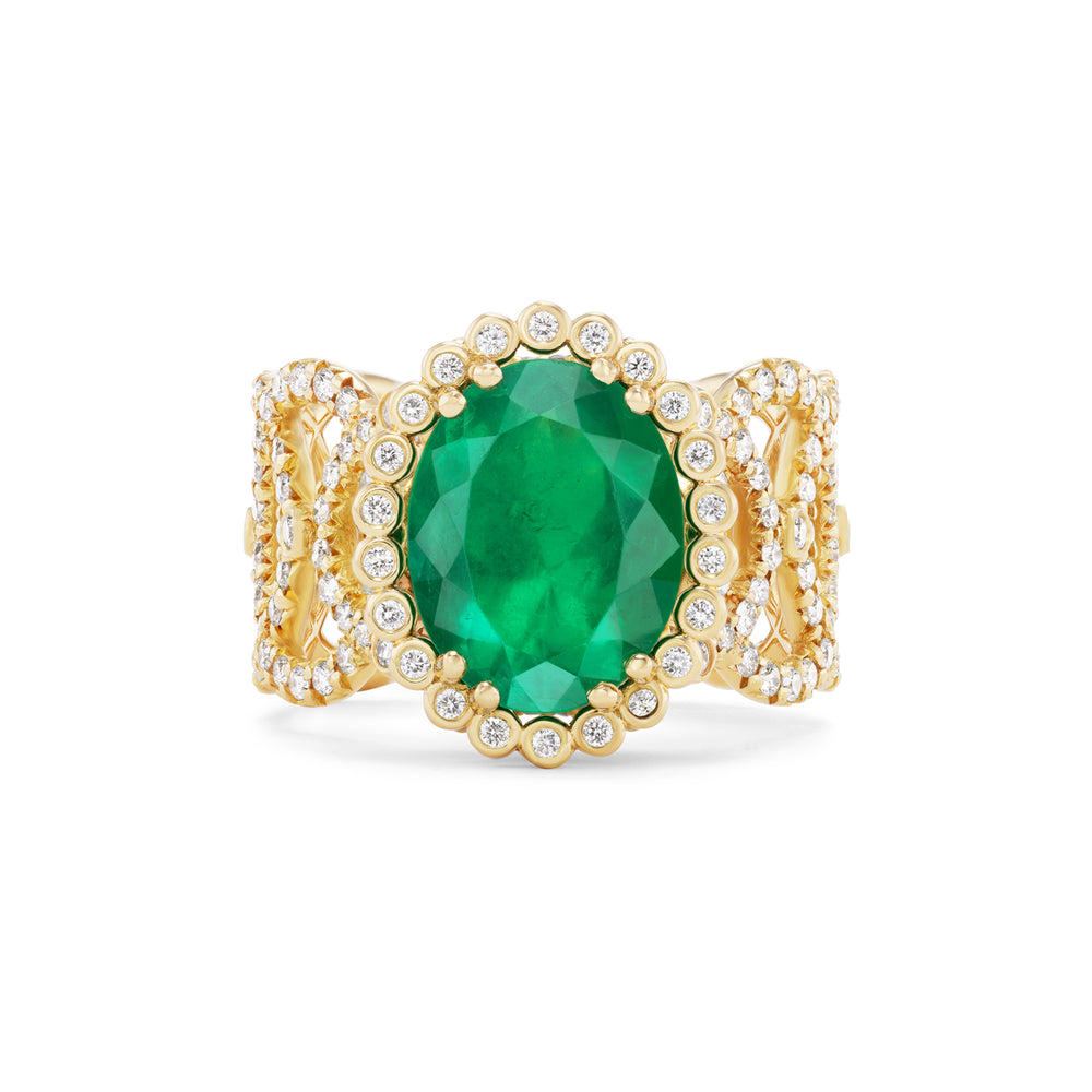 EMERALD ROYAL RING: 18K Yellow Gold, Emerald and Diamond