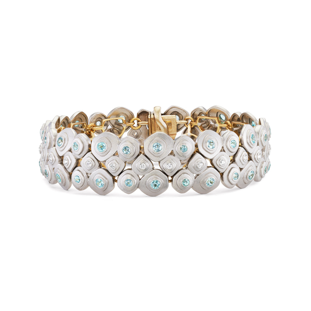 One of a Kind, Platinum "Pebble" Bracelet by with 50 Paraiba Tourmalines (2.50 cttw) and 27 Diamonds (0.67 cttw) from the Water Garden Collection by Alex Sepkus. One of a Kind. Reference: 08-00065