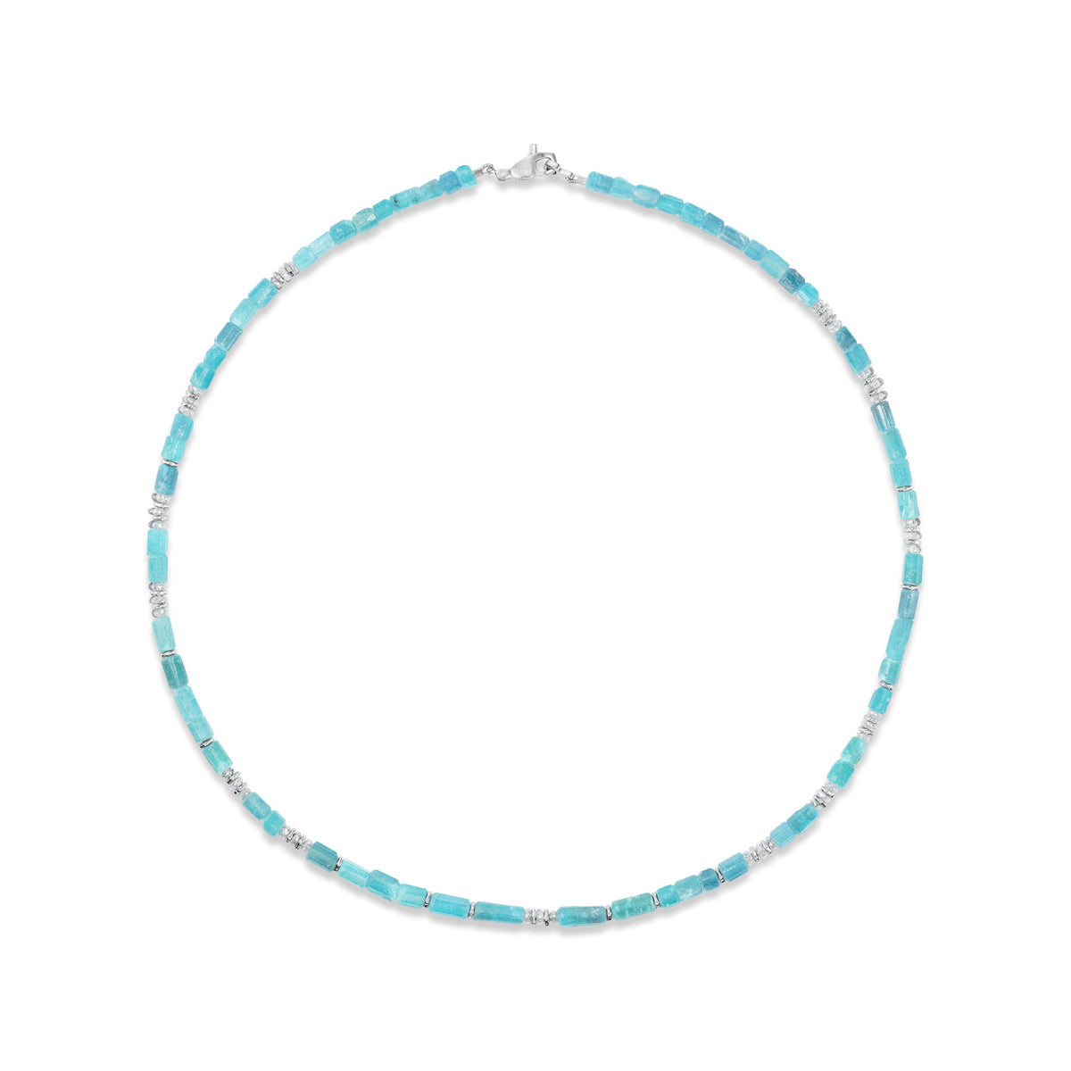 One of a Kind Flora Beaded Necklace with Platinum Rondelles, Brazilian Paraiba Tourmaline Beads and Diamond (10.60 cttw) Beads with Platinum Lobster Clasp with 1 diamond (0.015 ctw). Reference No: 01-00192