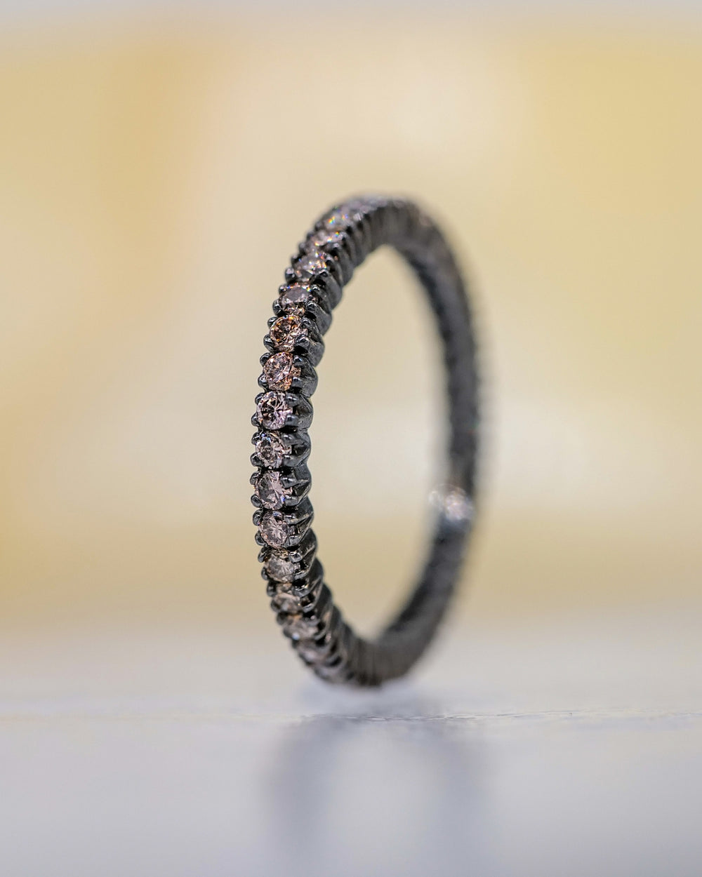 Meet Aster, a ring stack of natural color diamonds and blackened gold, exuding quiet confidence and a deep curiosity about the world. With a keen eye for the often overlooked, Aster notices lifeโs subtle details like the changing colors of fall leaves, reflected in the diamonds on the bands. Her elegance lies in the strength of observing the hidden beauty in lifeโs quiet moments.